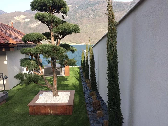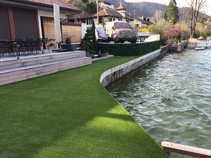 Dans un cadre cinématographique, les pieds dans l’eau du Lac d’Annecy, les propriétaires de cette superbe bâtisse ont choisi le gazon synthétique Saccinto, au regard de la qualité et du confort de nos produits. Une première découverte de la gamme sur un salon les a amené à travailler avec notre agence d’Annecy, proche de chez eux. Cette famille profite désormais d’une belle surface aménagée.