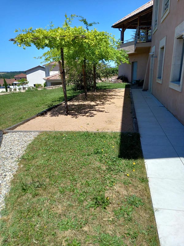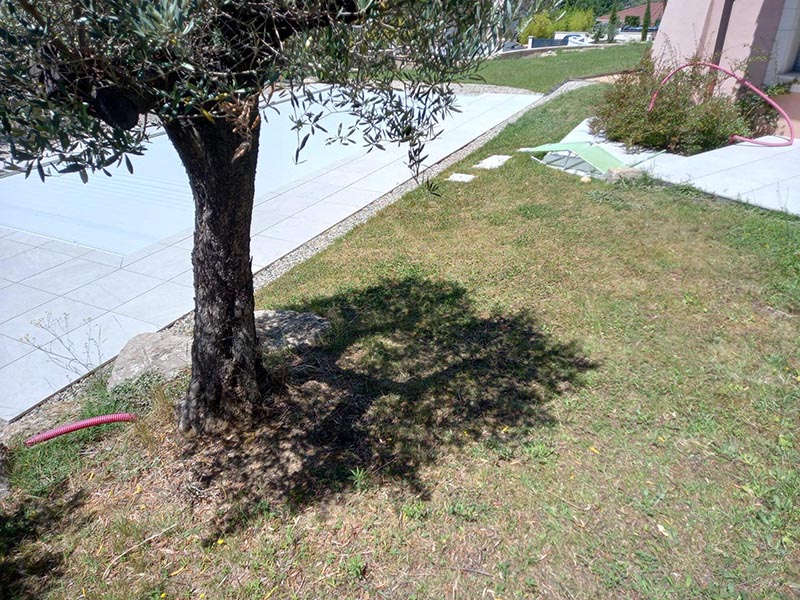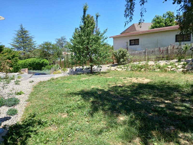 Abords de piscine Accès jardin avec fortes inclinaisons Contour jardin Grande zone de jardin arrière dédiée pour le chien