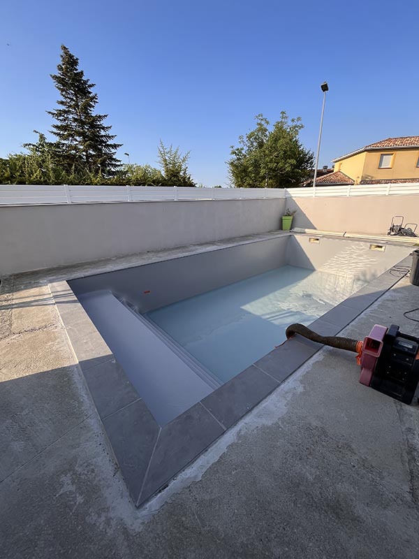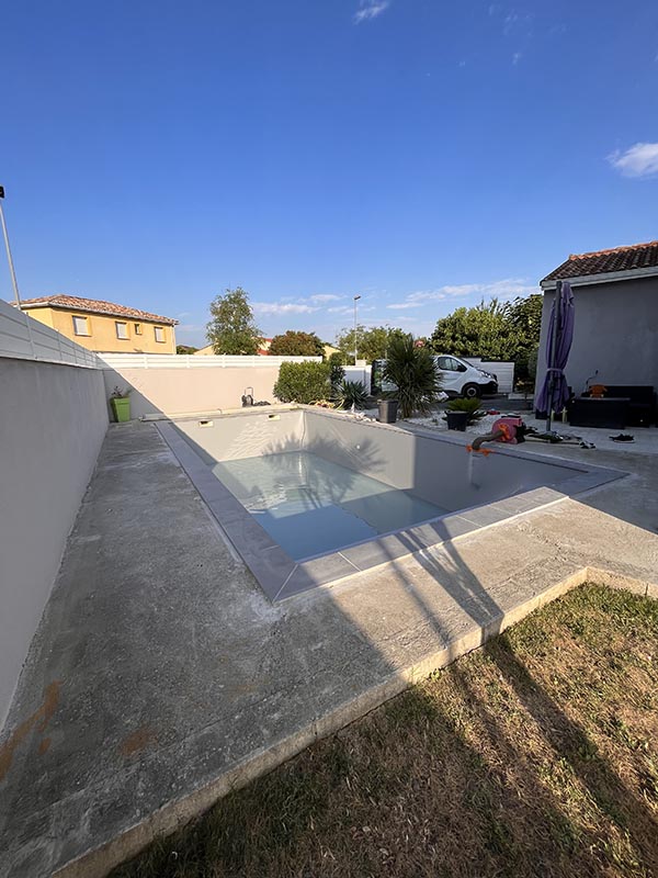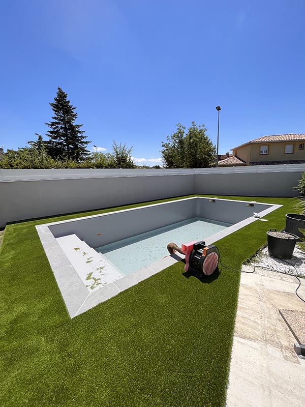 Aménagement d’un tour de piscine en gazon synthétique Supreme 40 en clé en main sur sol dur avec reprise de planéité