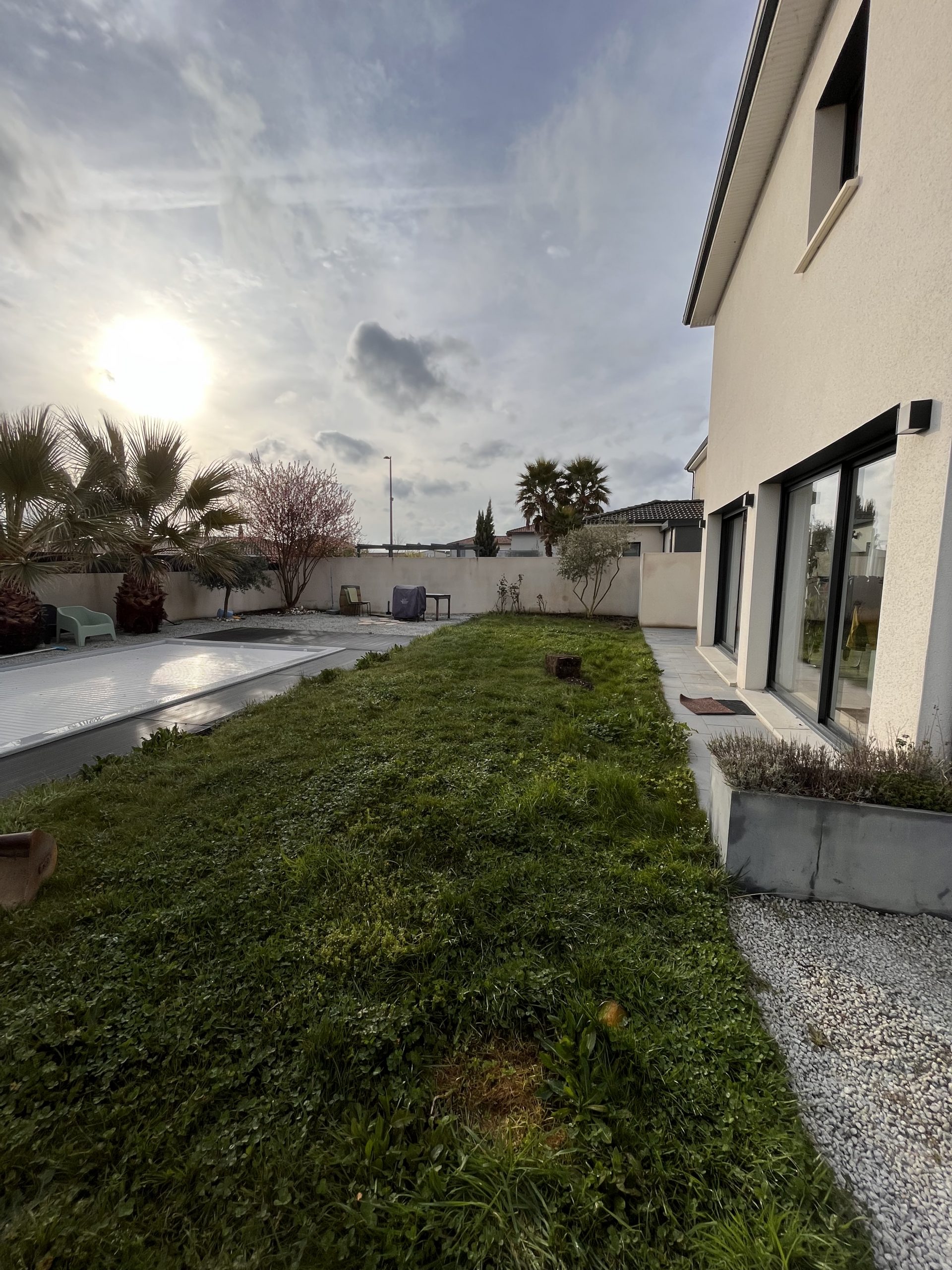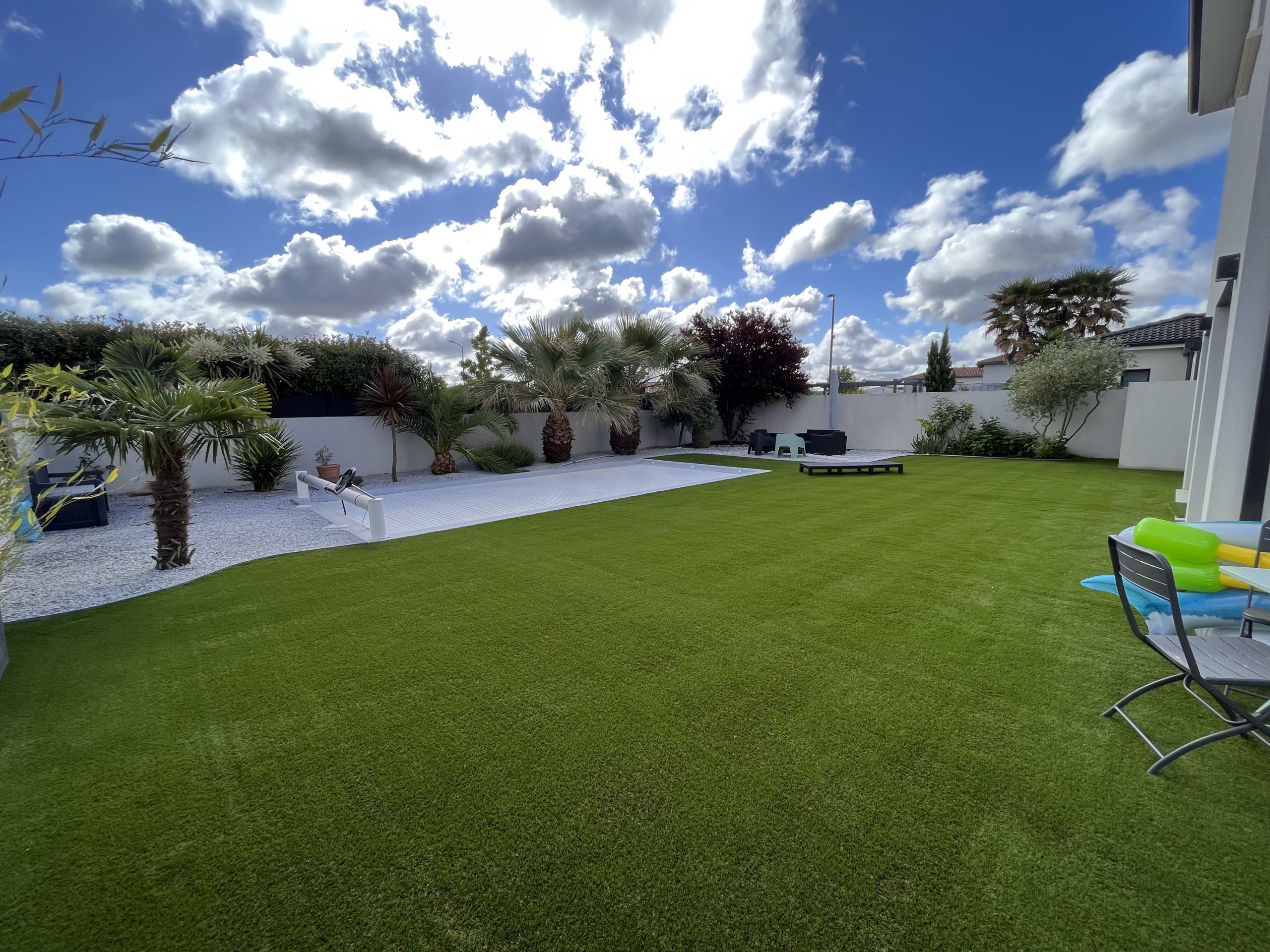Aménagement d’un jardin en gazon synthétique NATUREL 35 en clé en main sur sol meuble avec fourniture et pose de bordures en acier galvanisé de hauteur 4.5cm