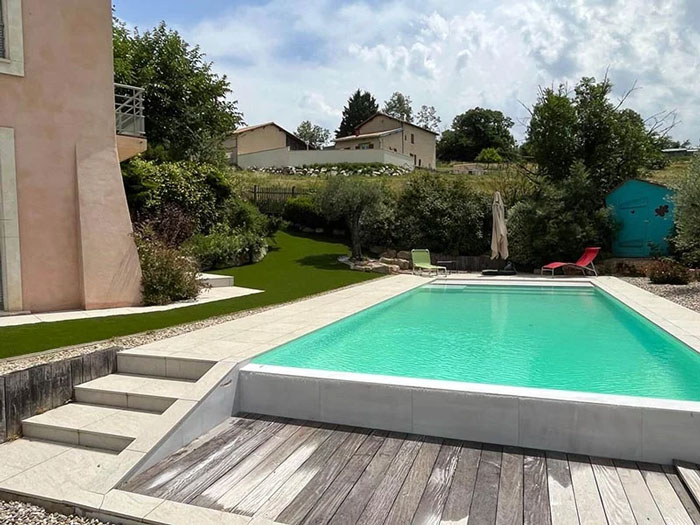 abords de piscine et jardin paysager gazon synthétique saccinto